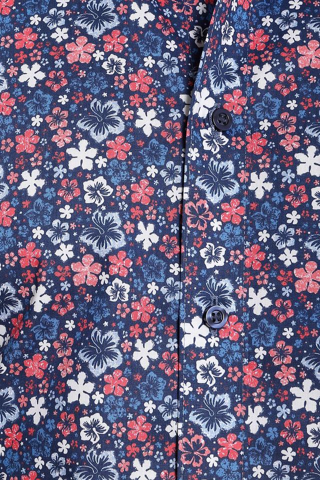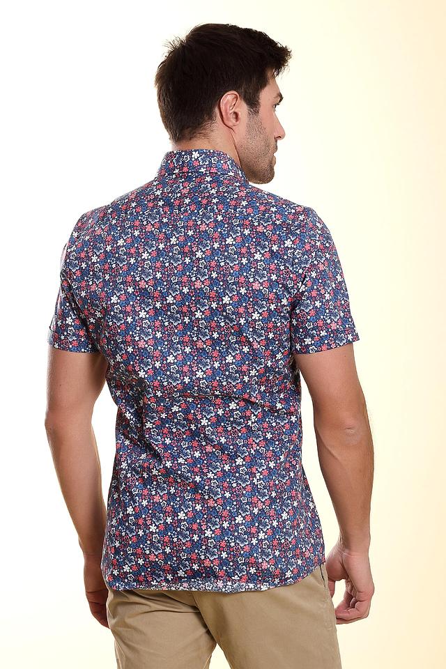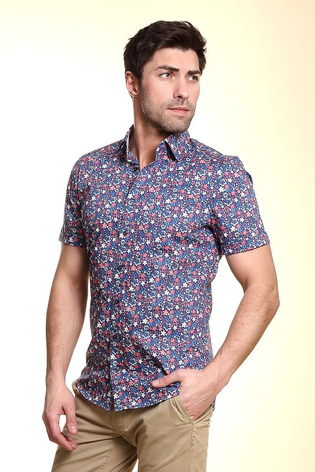 Мужская рубашка Olymp короткий рукав синего цвета с ярким цветочным принтом. Изготовлена из высококачественного хлопка с добавлением эластана для комфорта и удобства в носке. Состав: хлопок 97%, эластан 3%