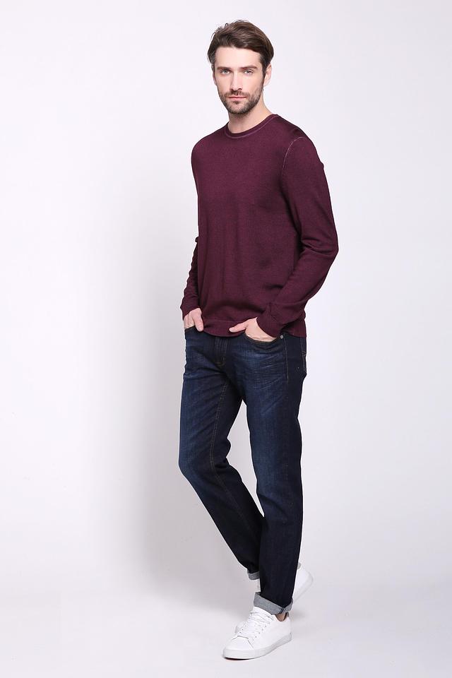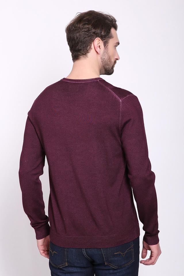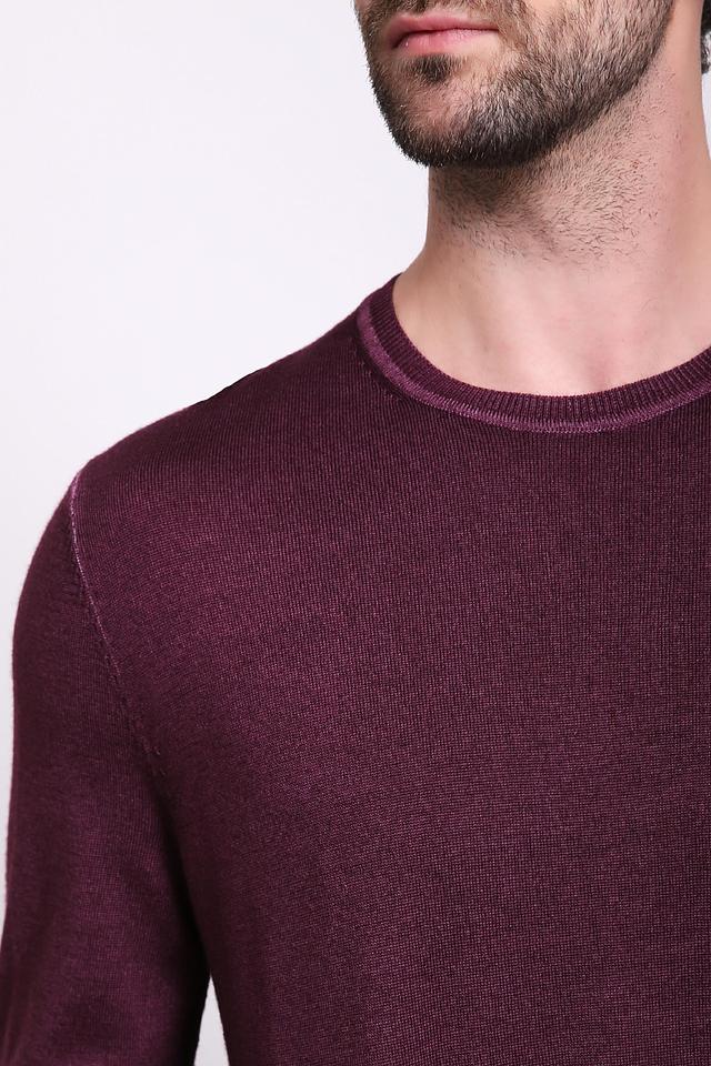 Джемпер имеет классический крой с круглым вырезом горловины и длинными рукавами. Бордовый цвет придает изделию элегантность и универсальность, позволяя легко сочетать его с различными элементами гардероба.