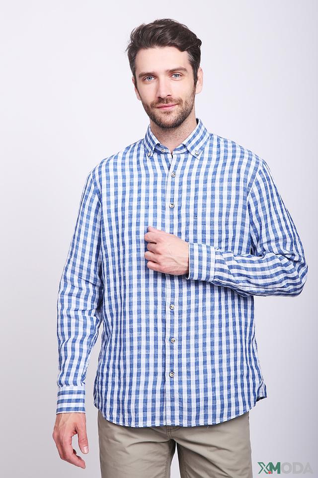 Мужская рубашка Olymp голубого цвета в классическую клетку. Изготовлена из 100% льна, что обеспечивает комфорт и воздухопроницаемость в жаркую погоду. Отличный выбор для создания стильного и непринужденного образа. Состав: лен 100%