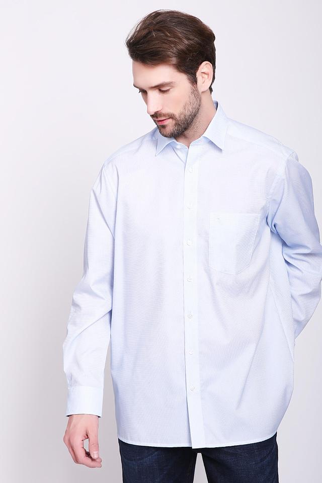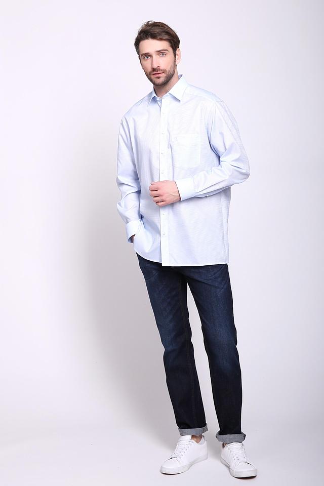 Голубая рубашка Olymp с длинным рукавом – это классический выбор для создания элегантного образа. Изготовлена из 100% хлопка, обеспечивающего комфорт и воздухопроницаемость. Рубашка имеет приталенный крой и мелкий рисунок. Состав: хлопок 100%