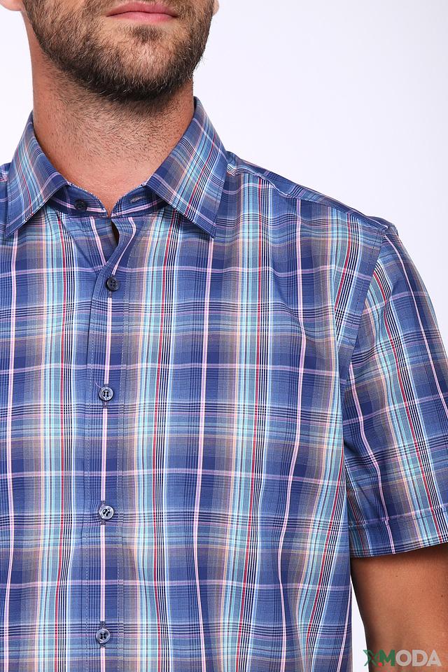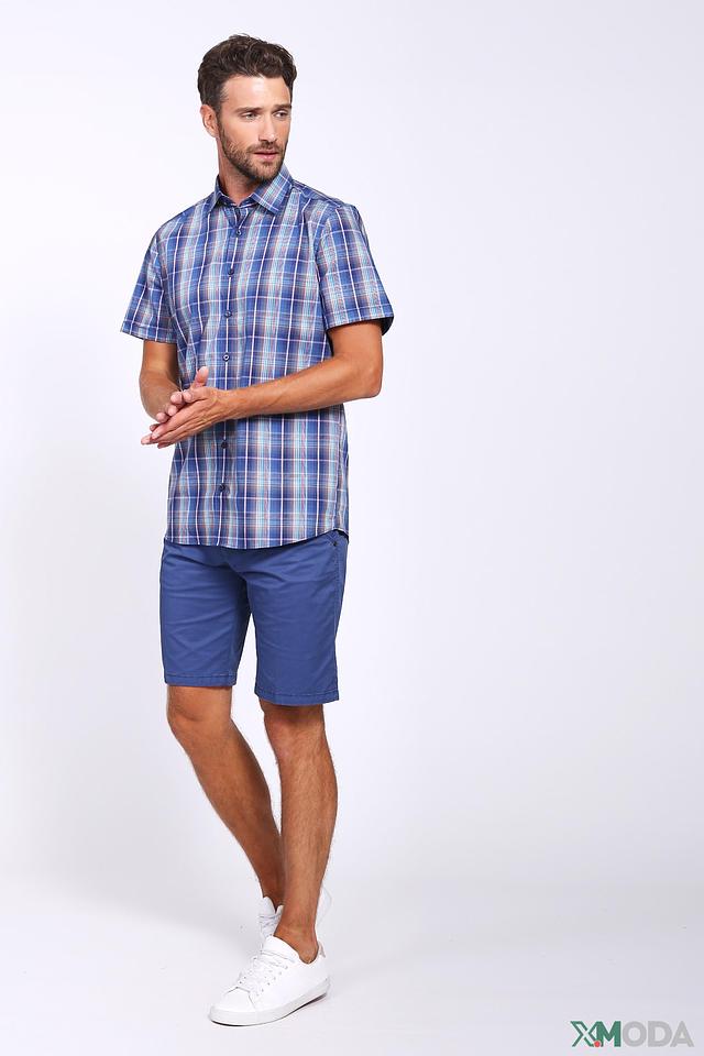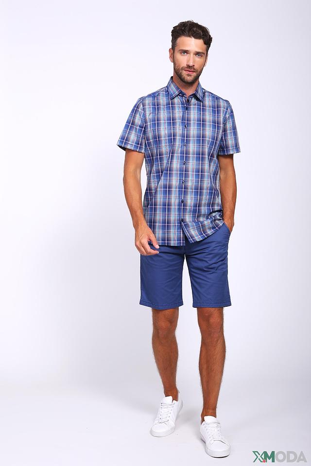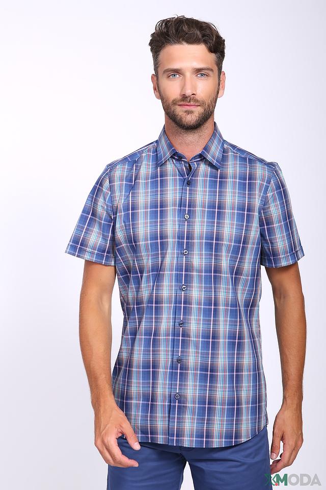 Мужская рубашка с коротким рукавом Olymp синего цвета в классическую клетку. Изготовлена из высококачественного хлопка с добавлением эластана для комфорта и удобства в носке. Состав: хлопок 97%, эластан 3%