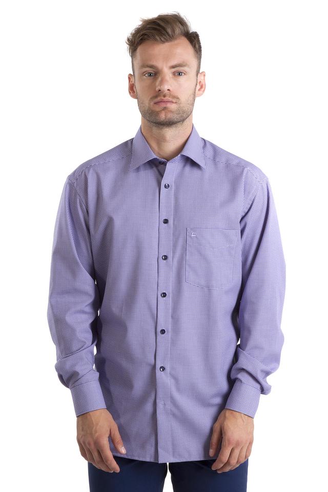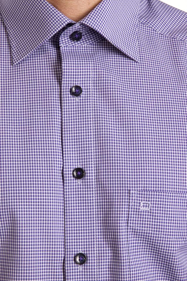 Приятная к телу, уютная и стильная рубашка в очень мелкую клетку в серых и сиреневых тонах. Отличное решение как на каждый день под джинсы или брюки, так и под офисный костюм за счет прямого кроя. Рубашка украшена темными пуговицами вдоль планки и накладным карманом. Прекрасный выбор для каждого мужчины на любой случай жизни. Рубашка из натурального хлопка подойдет на любой сезон.