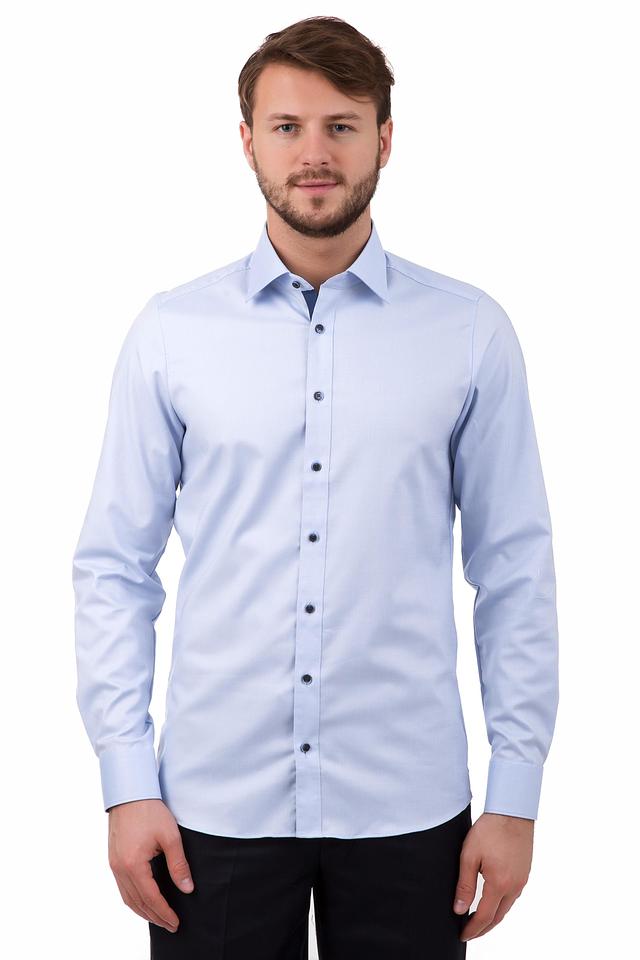 Классическая мужская рубашка от Olymp светло-голубого цвета станет отличным дополнением под любой костюм, брюки или даже джинсы. Изделие пошито из хлопка, что делает его мягким и удобным для ношения. Особенностью этой рубашки являются маленькие узоры в виде ромбов, которые придают ей оригинальности. А чёрно-голубые пуговицы отлично выделяются на светлом фоне, что делает обладателя данного изделия ещё более заметным среди толпы. Рубашка сделана с длинными рукавами, поэтому её можно носить в любую погоду.