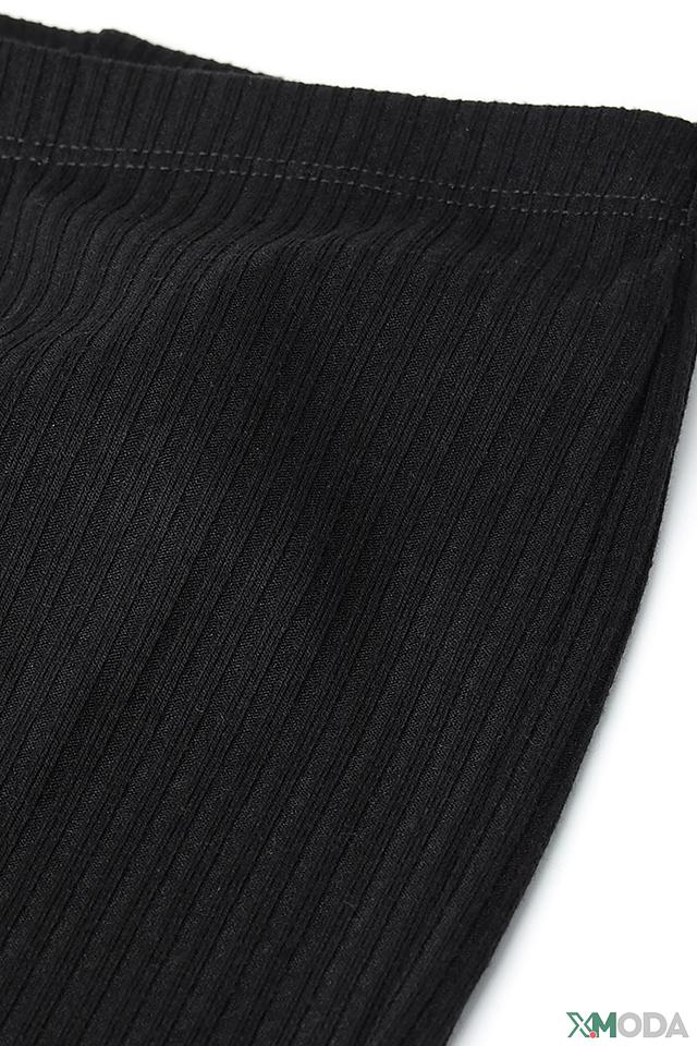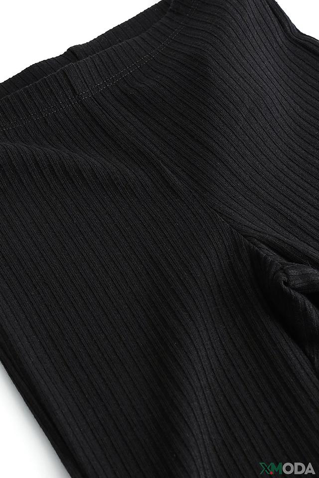 Джинсы выполнены в классическом чёрном цвете, который легко сочетается с любой одеждой. Ткань в рубчик придает изделию текстуру и визуальный интерес. Эластичный пояс обеспечивает удобную посадку и не стесняет движений.