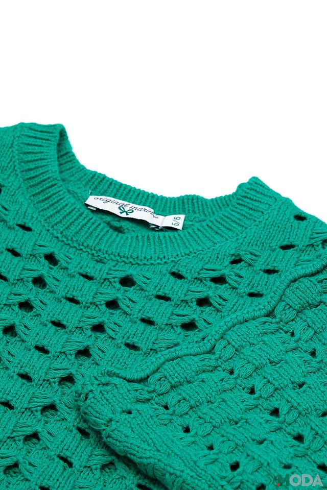 Джемпер Original Marines зеленого цвета – стильная и удобная модель для девочки. Изготовлен из 100% хлопка, имеет ажурный узор и короткий рукав-фонарик. Идеально подходит для создания модных образов. Состав: хлопок 100%