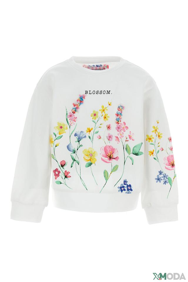 Белый свитшот Original Marines для девочки, украшенный ярким цветочным принтом. Изготовлен из мягкого хлопка с добавлением эластана для комфорта и свободы движений. Стильный и удобный выбор для повседневной носки. Состав: хлопок 96%, эластан 4%