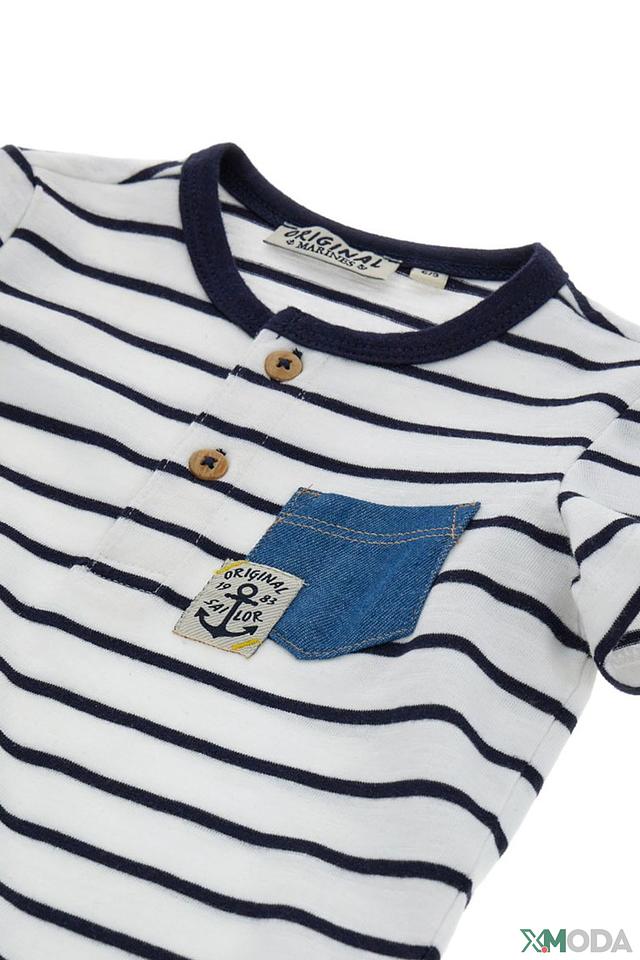 Эта стильная футболка от Original Marines станет прекрасным дополнением к гардеробу вашего мальчика. Футболка выполнена в классическом сине-белом полосатом дизайне, который всегда актуален.