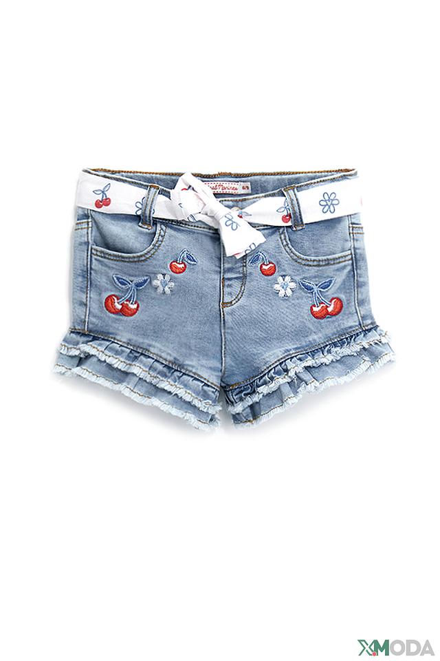 Эти очаровательные джинсовые шорты от Original Marines станут отличным дополнением к гардеробу юной модницы. Шорты выполнены в нежном голубом цвете и украшены игривой вышивкой с изображением вишен и цветочков, что придает им особый шарм.
