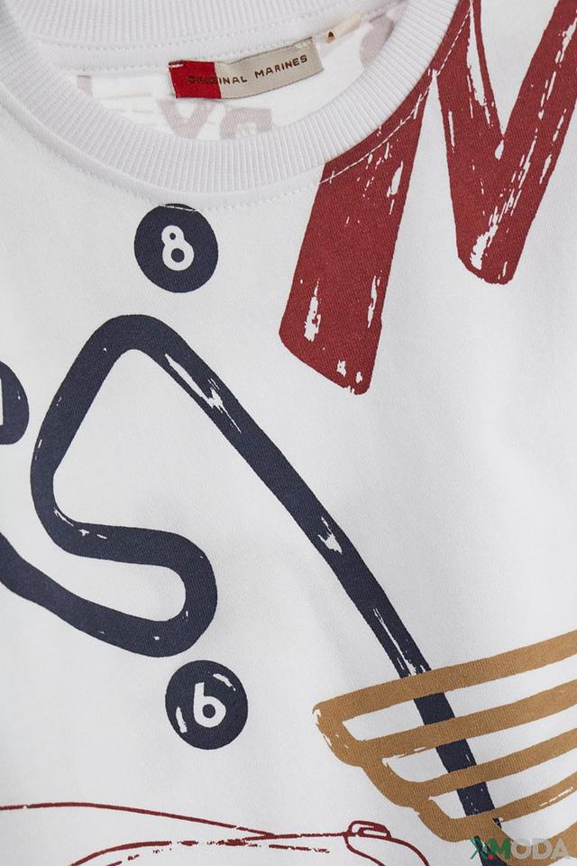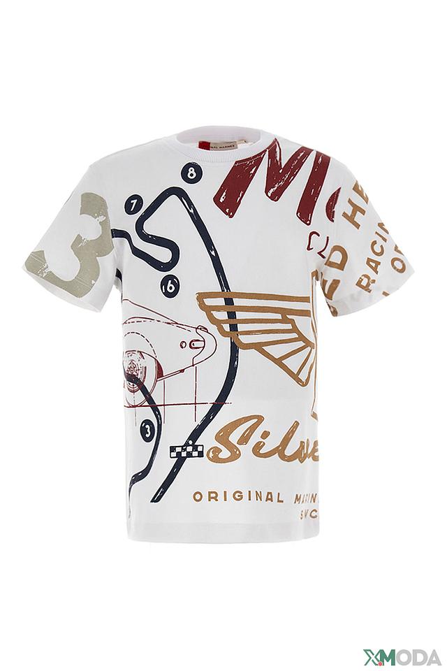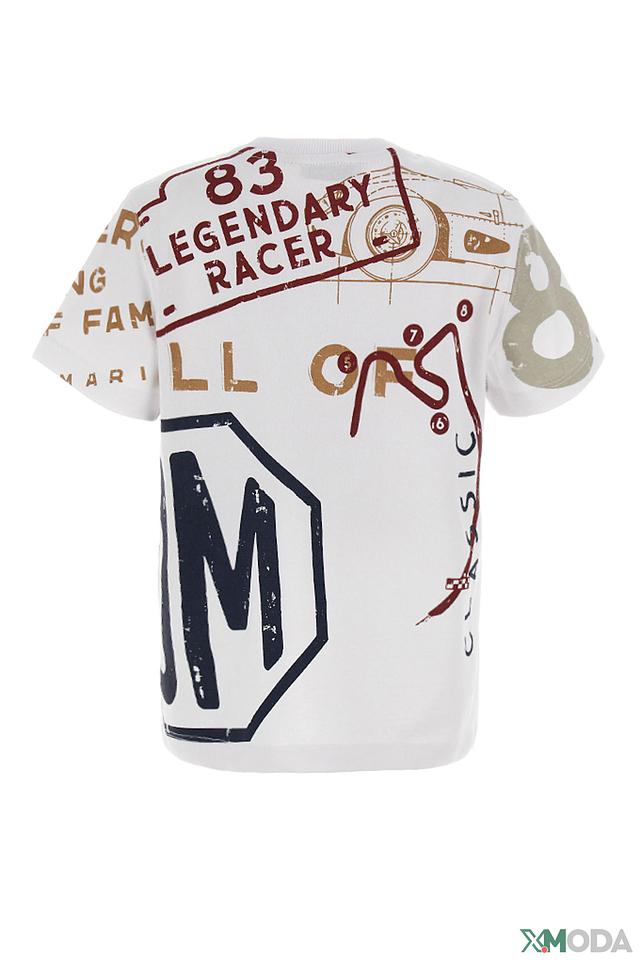 Белая футболка Original Marines для мальчика с ярким принтом в стиле ретро-гонок. Изготовлена из 100% хлопка, обеспечивая комфорт и воздухопроницаемость. Отличный выбор для активных детей! Состав: хлопок 100%