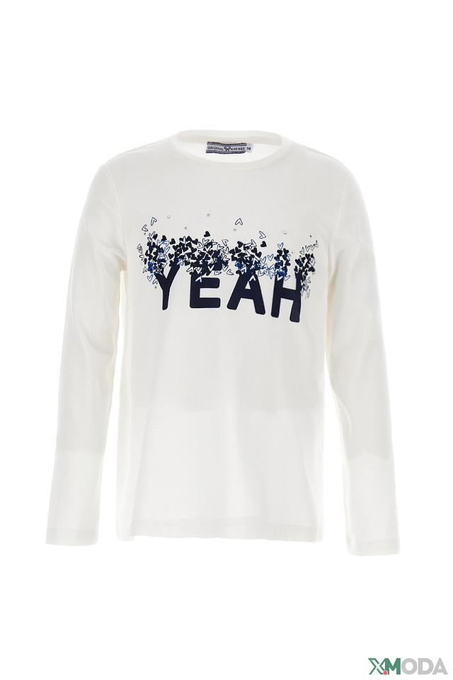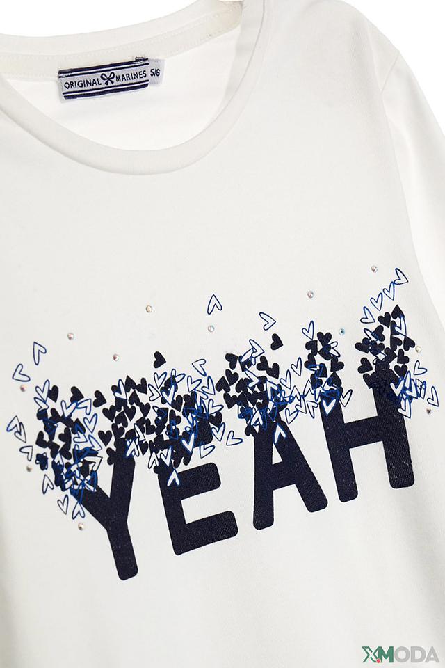Белая футболка Original Marines для девочки с длинным рукавом украшена стильным принтом "YEAH". Изготовлена из мягкого хлопка с добавлением эластана для комфорта и свободы движений. Идеальный выбор для повседневной носки. Состав: хлопок 92%, эластан 8%