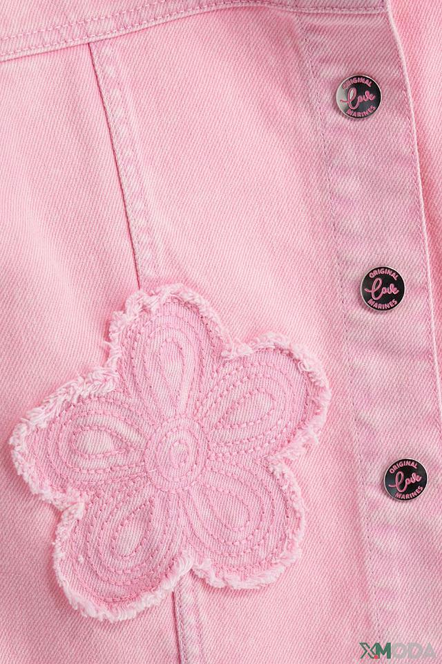 Розовый джинсовый жилет Original Marines для девочки с аппликацией в виде цветов. Модель выполнена из 100% хлопка, обеспечивая комфорт и удобство в носке. Стильный и практичный выбор для создания модных образов. Состав: хлопок 100%