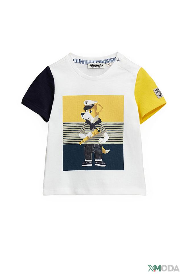 Эта стильная футболка от Original Marines станет отличным дополнением к гардеробу вашего мальчика. Футболка выполнена в белом цвете и украшена ярким принтом с изображением собаки в морской форме, что придает ей игривый и запоминающийся вид.