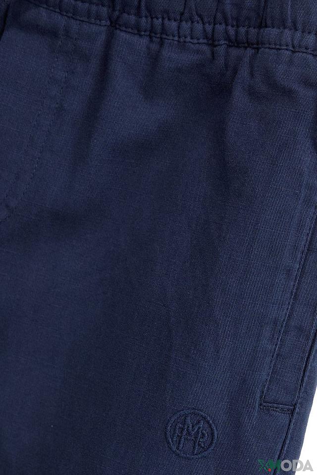 Синие брюки от Original Marines — удобная и стильная модель для мальчиков. Брюки выполнены из хлопка с добавлением льна, имеют эластичный пояс и манжеты внизу штанин. Состав: хлопок 79%, лен 21%