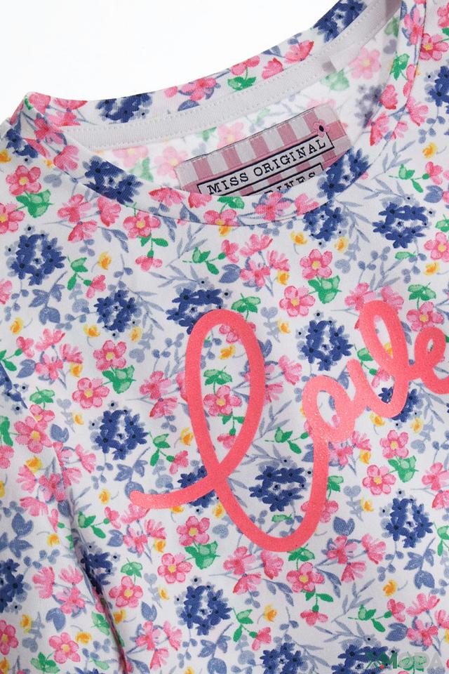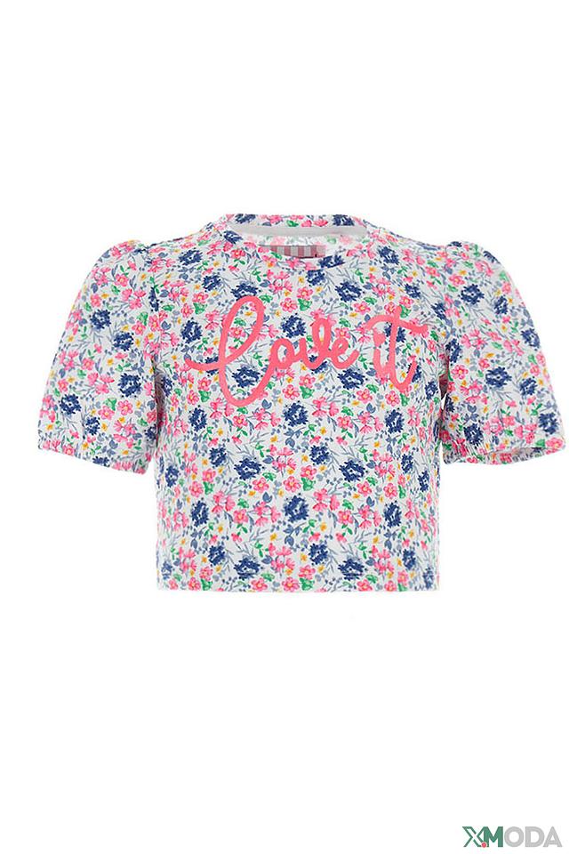 Эта очаровательная футболка от Original Marines станет прекрасным дополнением к гардеробу юной модницы. Футболка выполнена в нежно-розовой цветовой гамме и украшена ярким цветочным принтом, который придает ей игривый и романтичный вид.