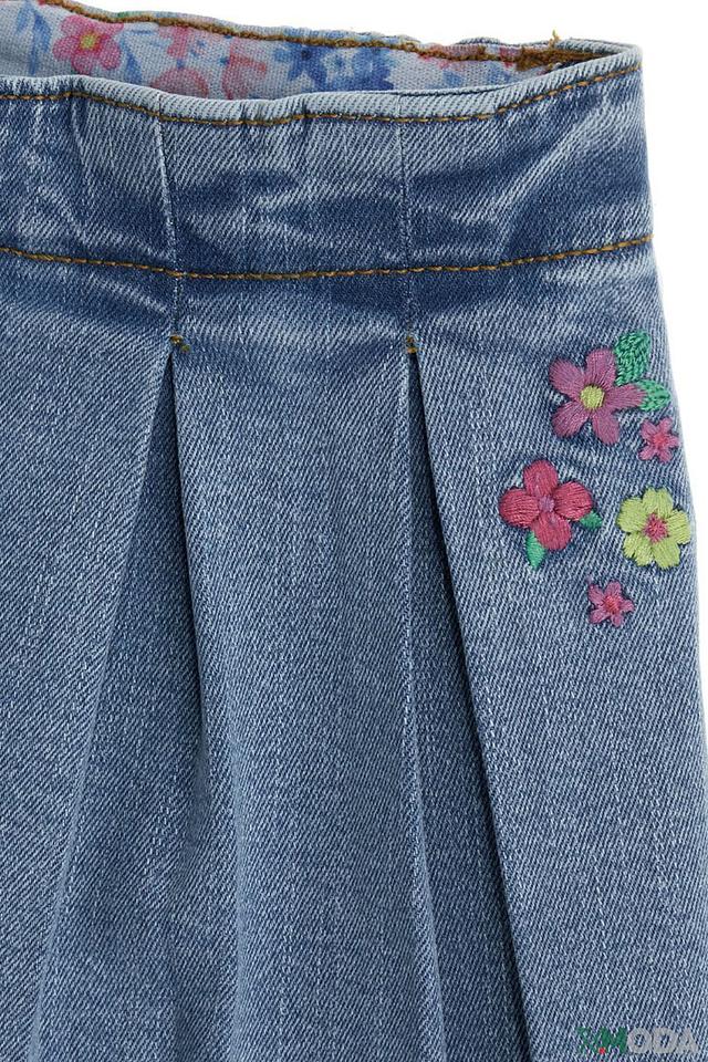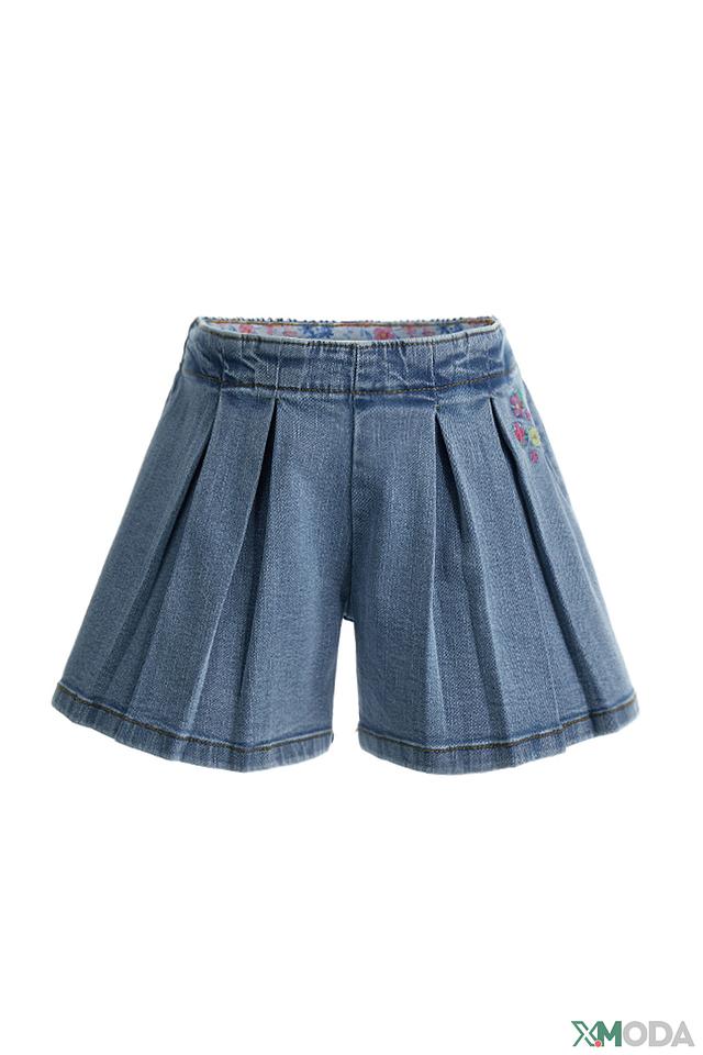 Джинсовые шорты Original Marines голубого цвета, украшены цветочной вышивкой. Модель с эластичным поясом и плиссировкой спереди, обеспечивающей комфорт и свободу движений. Состав: хлопок 69%, вискоза 15%, полиэстер 15%, эластан 1%