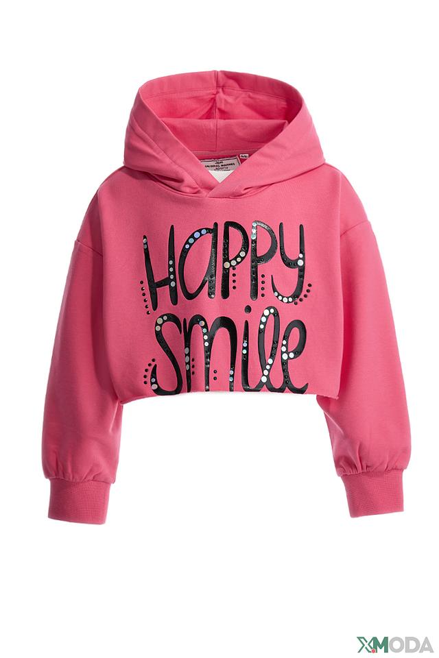 Розовая толстовка Original Marines для девочки с ярким принтом "Happy Smile". Удобная модель из мягкого хлопка с эластаном, идеально подходит для повседневной носки и активных игр. Состав: хлопок 95%, эластан 5%