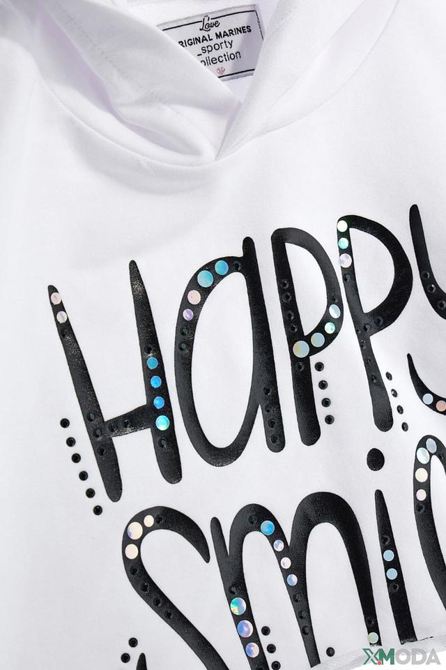 Белая толстовка Original Marines для девочки с ярким принтом "Happy Smile". Удобная модель из мягкого хлопка с эластаном, идеально подходит для повседневной носки и активных игр. Состав: хлопок 95%, эластан 5%