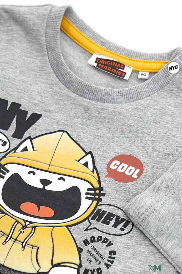 Эта стильная футболка от Original Marines станет отличным дополнением к гардеробу вашего мальчика. Футболка выполнена в сером цвете и украшена ярким, красочным принтом с изображением забавного персонажа в стиле Нью-Йорка.