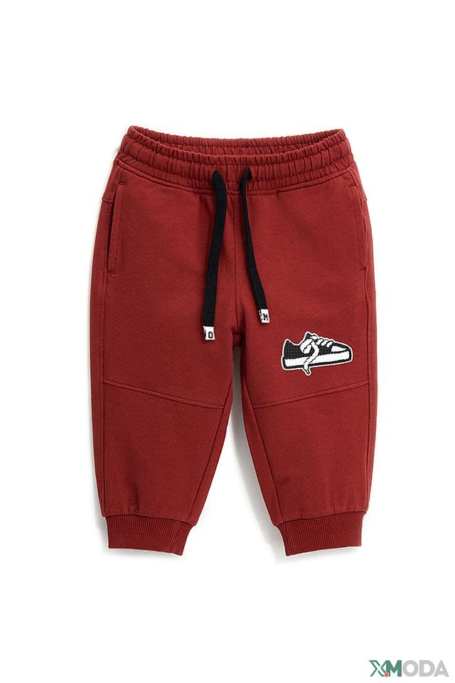 Брюки Original Marines бордового цвета — удобная и стильная одежда для мальчиков. Модель выполнена из мягкого хлопка с добавлением эластана, имеет эластичный пояс и манжеты на щиколотках. Декорированы нашивкой с изображением кроссовок. Состав: хлопок 95%, эластан 5%