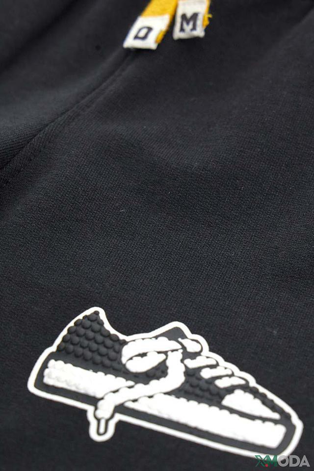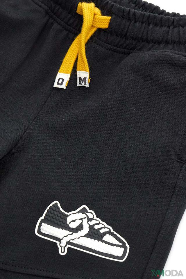 Чёрные брюки от Original Marines для мальчиков, выполнены из мягкого хлопка с эластаном. Модель дополнена яркими жёлтыми шнурками и стильным принтом в виде кроссовок. Состав: хлопок 95%, эластан 5%
