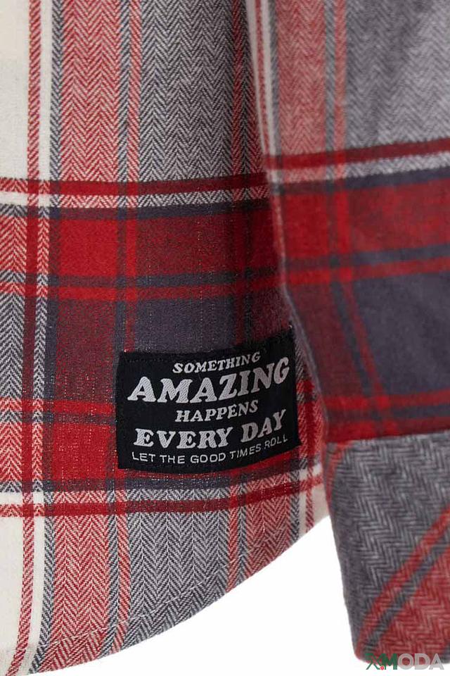 Рубашка имеет классический крой с длинными рукавами и застежкой на пуговицы. Яркий клетчатый принт в сочетании красного, белого и серого цветов делает эту рубашку особенно привлекательной и выделяющейся.