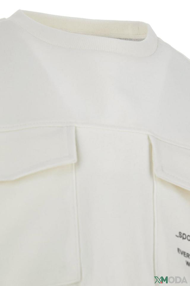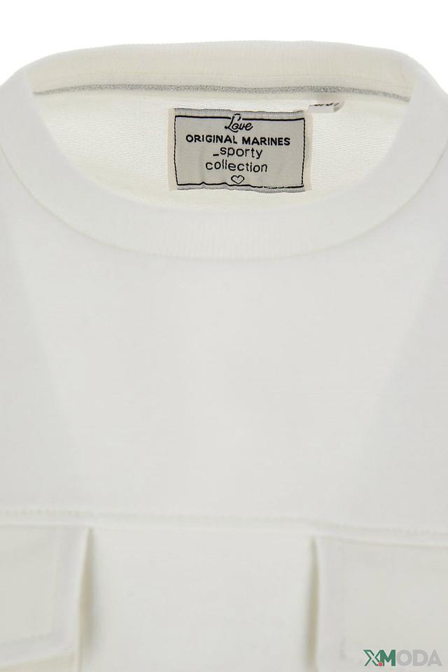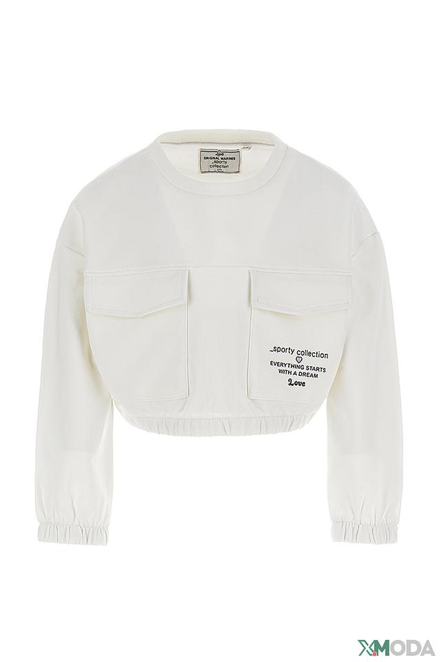 Белый пуловер от Original Marines – удобная и стильная модель для девочки. Изготовлен из мягкого хлопка с добавлением эластана, имеет короткий рукав и карман с принтом. Состав: хлопок 95%, эластан 5%