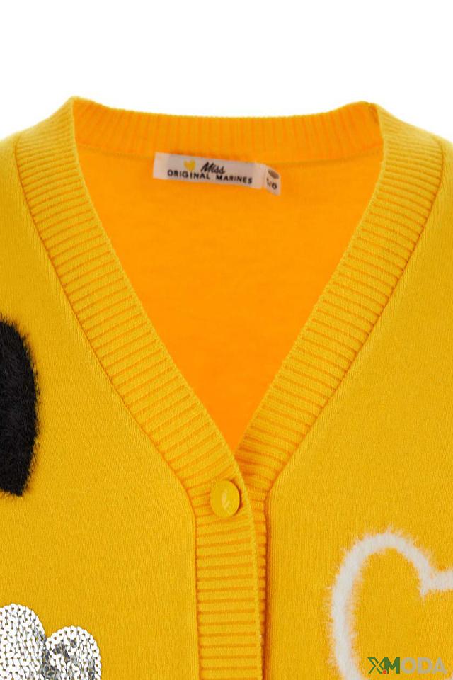 Этот очаровательный кардиган от Original Marines станет прекрасным дополнением к гардеробу юной модницы. Яркий жёлтый цвет и милые аппликации в виде сердечек делают его особенно привлекательным.