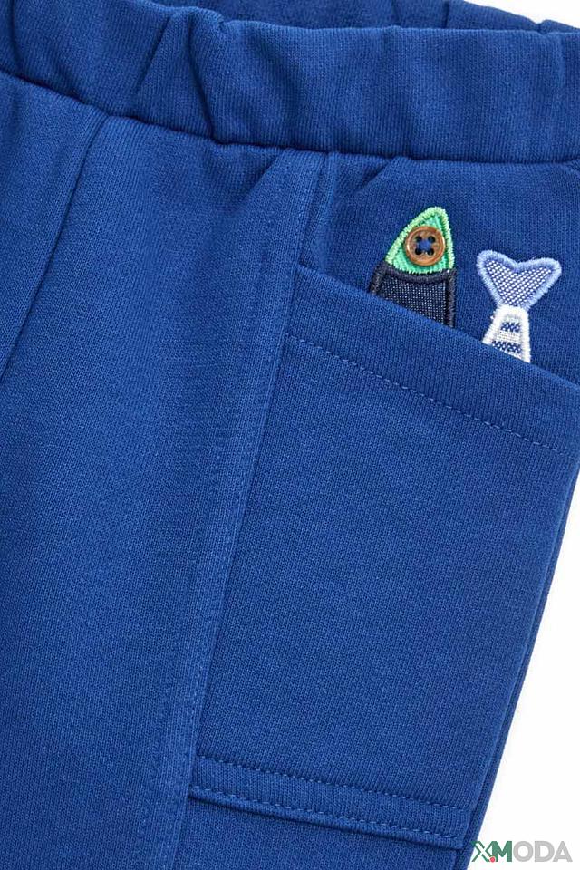 Синие брюки Original Marines для мальчиков с яркими аппликациями в виде рыбки и космического корабля. Удобная модель с эластичным поясом и мягкой ткани для комфорта вашего ребенка. Состав: хлопок 61%, полиэстер 39%