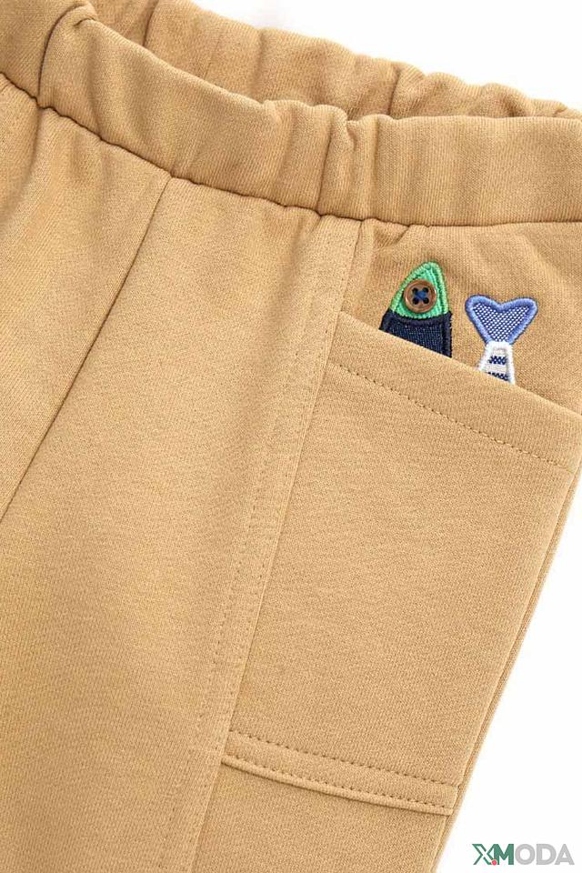 Дизайн брюк включает в себя эластичный пояс с утяжкой, два боковых кармана и накладной карман с декоративной аппликацией в виде рисунка. Удобный крой не сковывает движения, что особенно важно для активных детей.