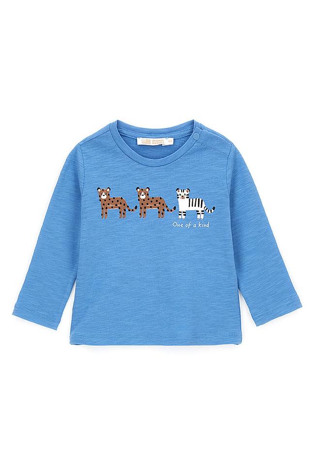 Синий лонгслив от Original Marines с ярким принтом животных – отличный выбор для маленьких модников. Изготовлен из мягкого хлопка, обеспечивающего комфорт в течение дня. Удобный крой не сковывает движения. Состав: хлопок 100%