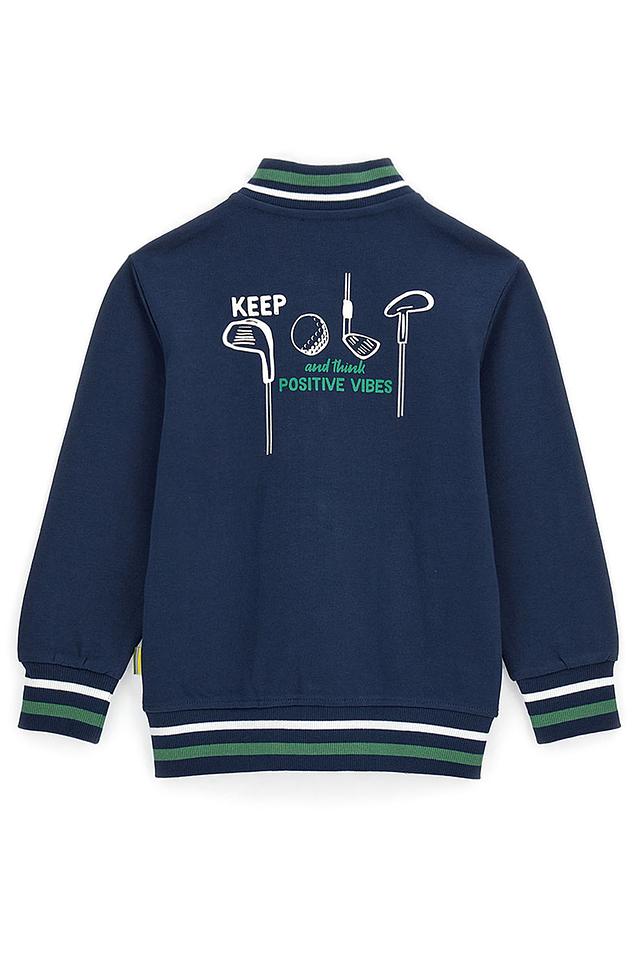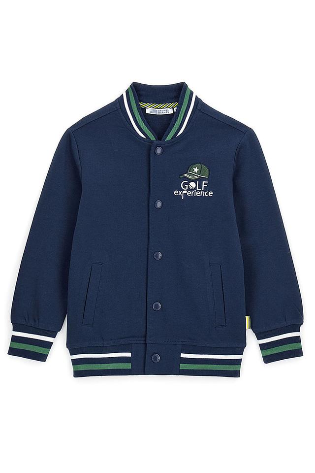 Синяя толстовка Original Marines для мальчика, украшенная вышивкой в виде гольф-клуба и надписью. Модель выполнена в стиле спортивного бомбера с эластичными манжетами и воротником. Состав: хлопок 100%