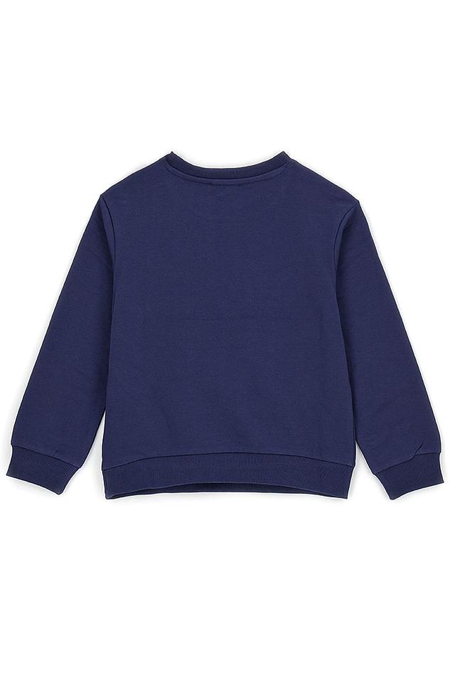Классический крой с круглым вырезом горловины и длинными рукавами делает этот свитшот универсальным элементом детского гардероба. Он идеально подходит для прогулок, игр и посещения детского сада.