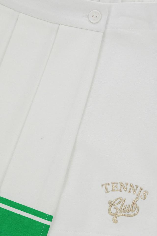Передняя часть юбки украшена зелеными полосами и вышивкой "Tennis Club", что придает ей спортивный и стильный вид. Плиссированная юбка создает легкий и воздушный силуэт.