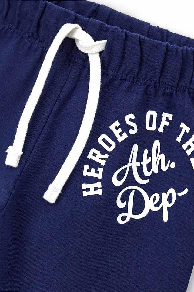 Брюки имеют удобный эластичный пояс с регулирующими шнурками, благодаря чему они хорошо сидят и не сковывают движения. На левой штанине расположен стильный принт с надписью "HEROES OF THE Ath. Dep.", выполненный в белом цвете.