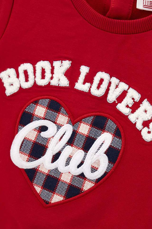 Джемпер Original Marines для девочки, красного цвета, с ярким принтом "Book Lovers Club". Удобный крой и мягкий хлопок обеспечат комфорт и свободу движений. Состав: хлопок 95%, эластан 5%