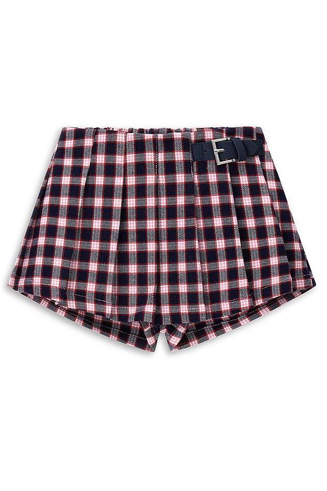 Детская юбка-шорты Original Marines выполнена в клетчатом дизайне сине-красно-белой расцветки. Модель дополнена эластичным поясом и декоративным ремнём с пряжкой. Состав: полиэстер 65%, вискоза 33%, эластан 2%