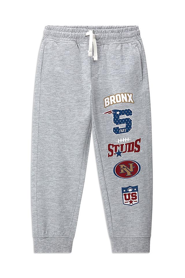 Серые брюки Original Marines для мальчика, выполнены из мягкого хлопка с ярким принтом. Удобная модель с эластичным поясом и манжетами для активных игр и повседневной носки. Состав: хлопок 100%