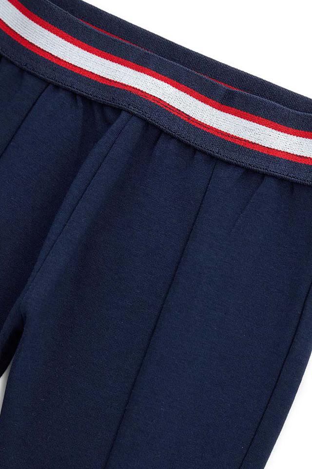 Детские брюки Original Marines синего цвета с яркими полосками на поясе – удобный и стильный выбор для активных девочек. Модель выполнена из мягкого хлопка с добавлением эластана для комфорта и свободы движений. Состав: хлопок 92%, эластан 8%
