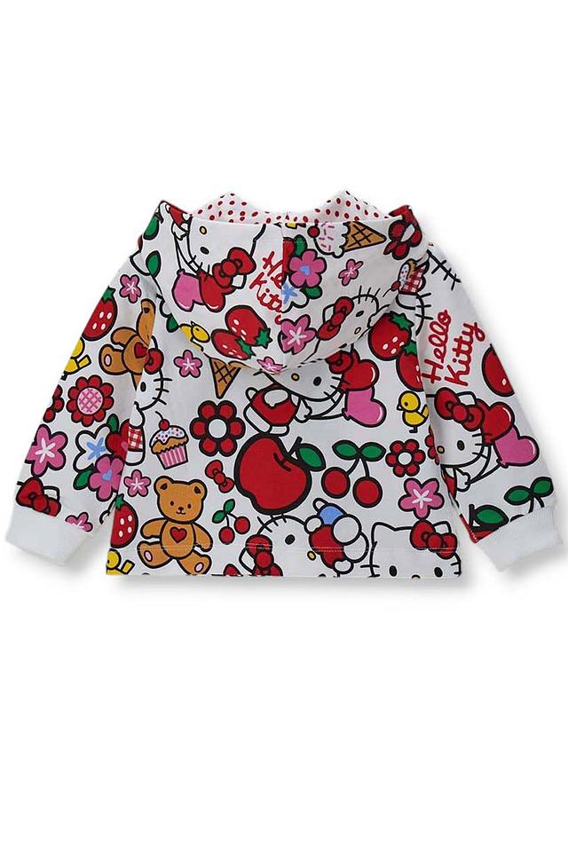 Белый джемпер Original Marines с ярким принтом Hello Kitty станет отличным дополнением к детскому гардеробу. Модель с капюшоном и застежкой-молнией украшена забавными рисунками и персонажами. Состав: Состав_подкладка хлопок 100%, хлопок 95%, эластан 5%