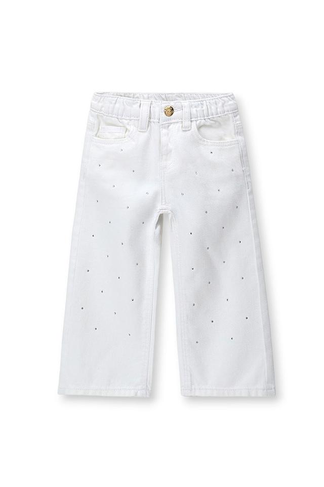 Белые джинсы Original Marines для девочки, украшенные блестками. Модель с эластичным поясом и удобным кроем идеально подойдёт для активных игр и повседневной носки. Изготовлены из 100% хлопка. Состав: хлопок 100%