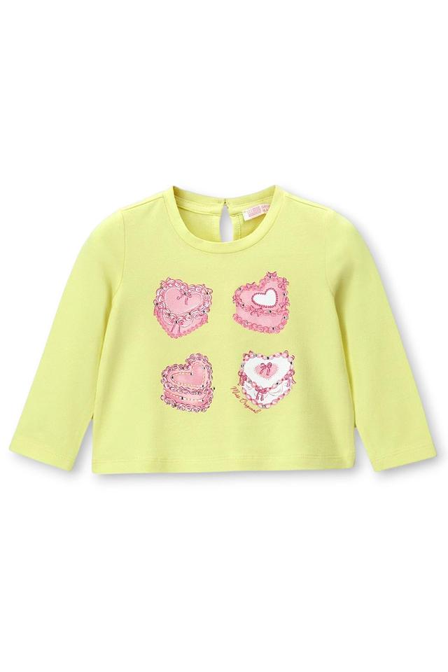Детская футболка Original Marines лаймового цвета украшена принтом в виде розовых сердечек. Модель с длинными рукавами выполнена из мягкого хлопка с добавлением эластана для комфорта и свободы движений. Состав: хлопок 92%, эластан 8%