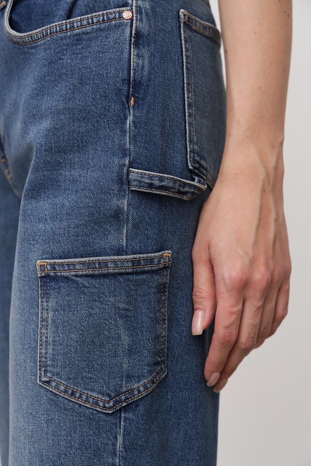 Джинсы оснащены функциональными накладными карманами на бедрах, что придает им практичный и современный вид. Изготовлены из высококачественного хлопка с добавлением 1% эластана, обеспечивающего комфорт при носке и хорошую посадку по фигуре.