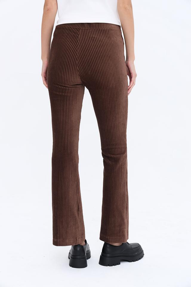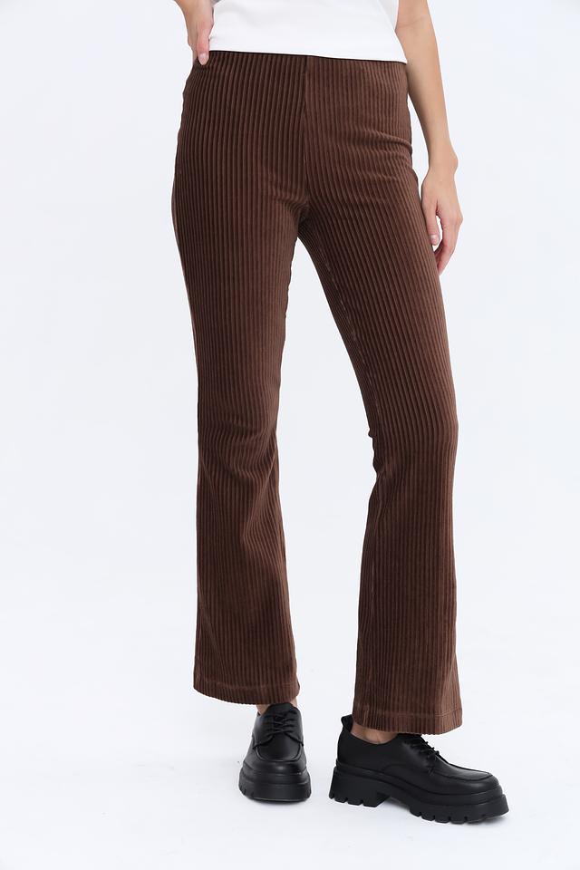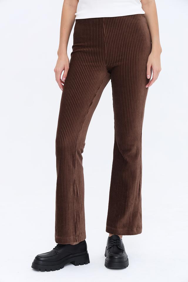 Вертикальные полосы в рубчик добавляют текстуру и визуально вытягивают фигуру. Эти брюки идеально подойдут для создания как повседневных, так и более элегантных образов. Они прекрасно сочетаются с блузками, топами и свитерами.