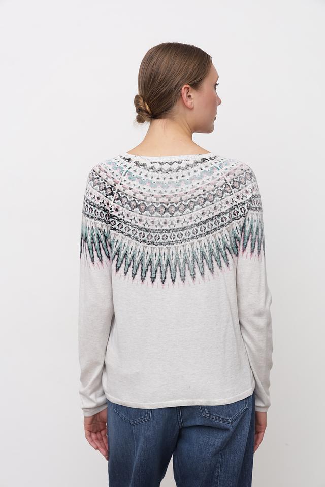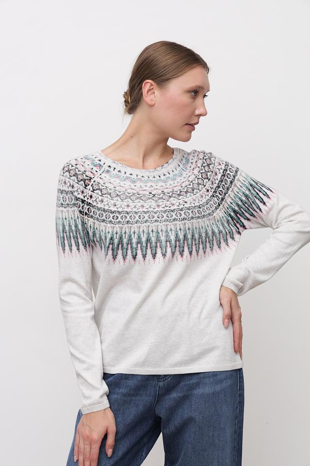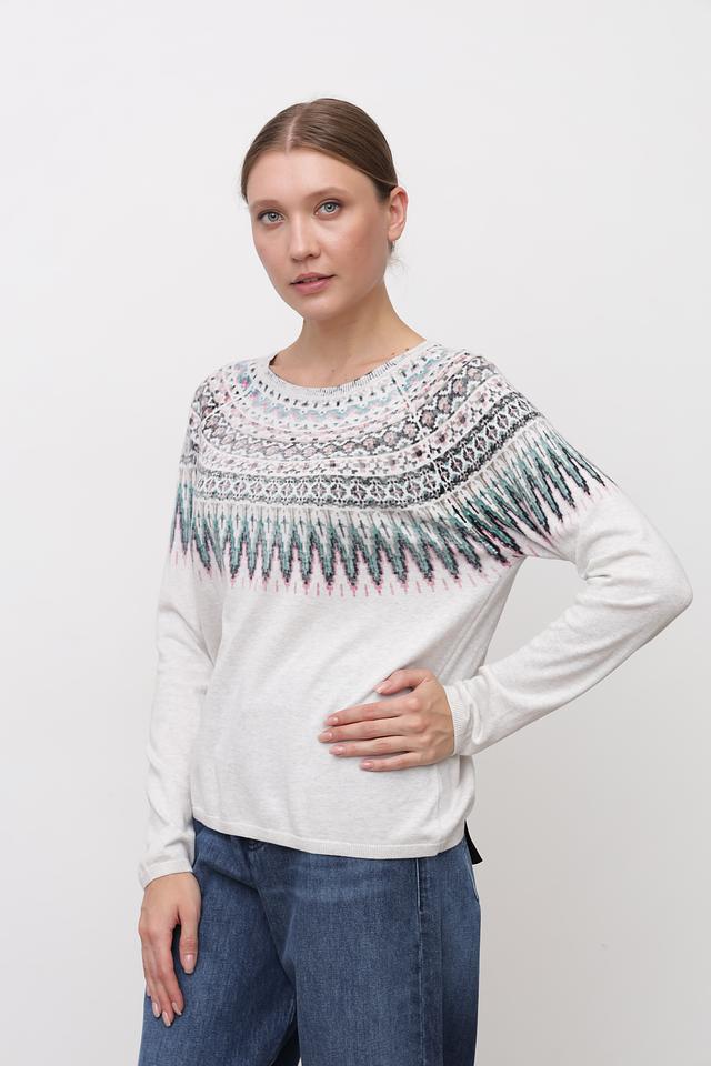 Стильный пуловер Oui светло-серого цвета с ярким жаккардовым узором станет отличным дополнением к вашему гардеробу. Изготовлен из 100% хлопка, обеспечивая комфорт и удобство в носке. Состав: хлопок 100%