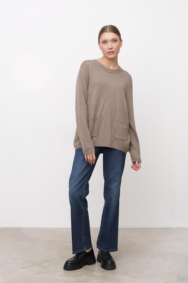 Особенностью данной модели являются два накладных кармана на передней части, которые добавляют практичности и оригинальности. Пуловер идеально сочетается с джинсами, брюками или юбками, создавая стильный и непринужденный образ.