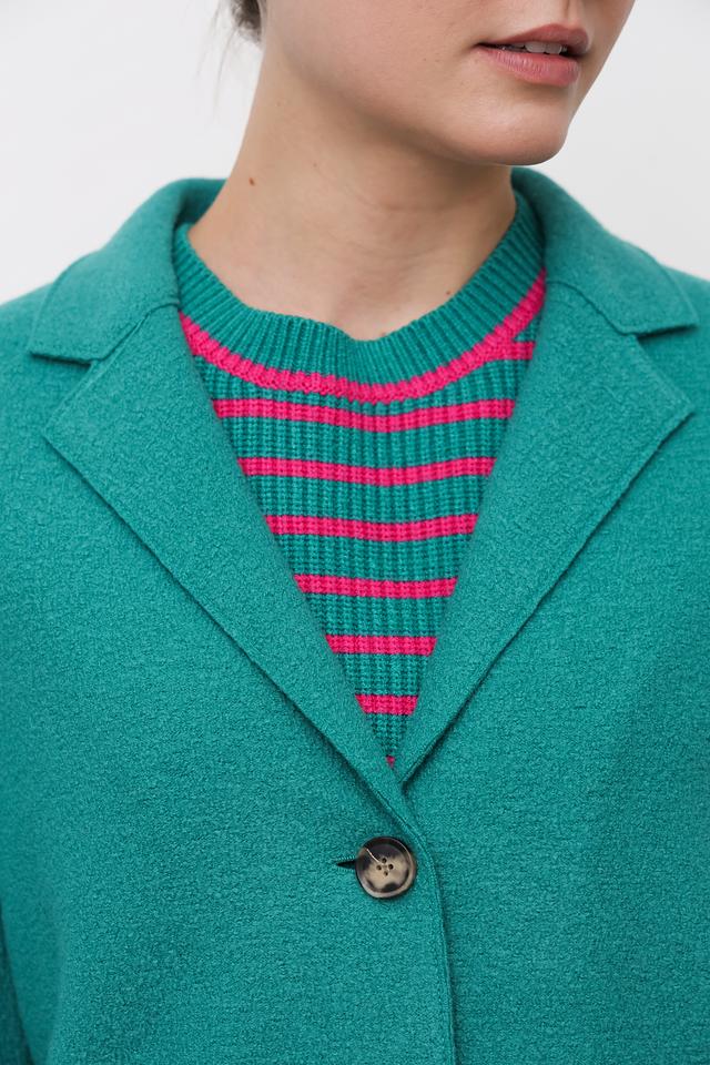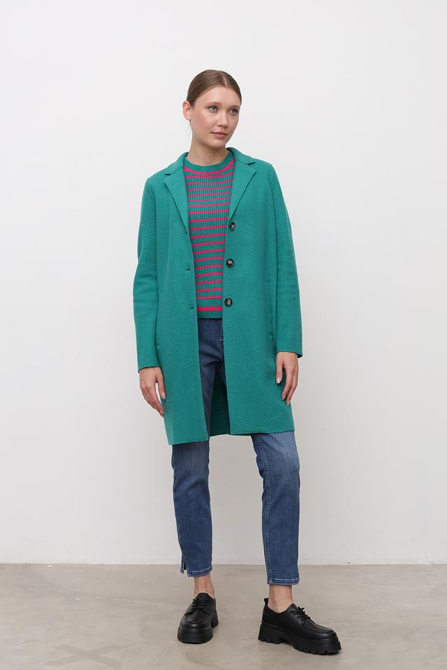 Цвет пальто – насыщенный зелёный, который отлично сочетается с различными оттенками. Пальто идеально подойдет для создания как повседневных, так и более формальных образов. Оно прекрасно сочетается с джинсами, брюками и юбками.