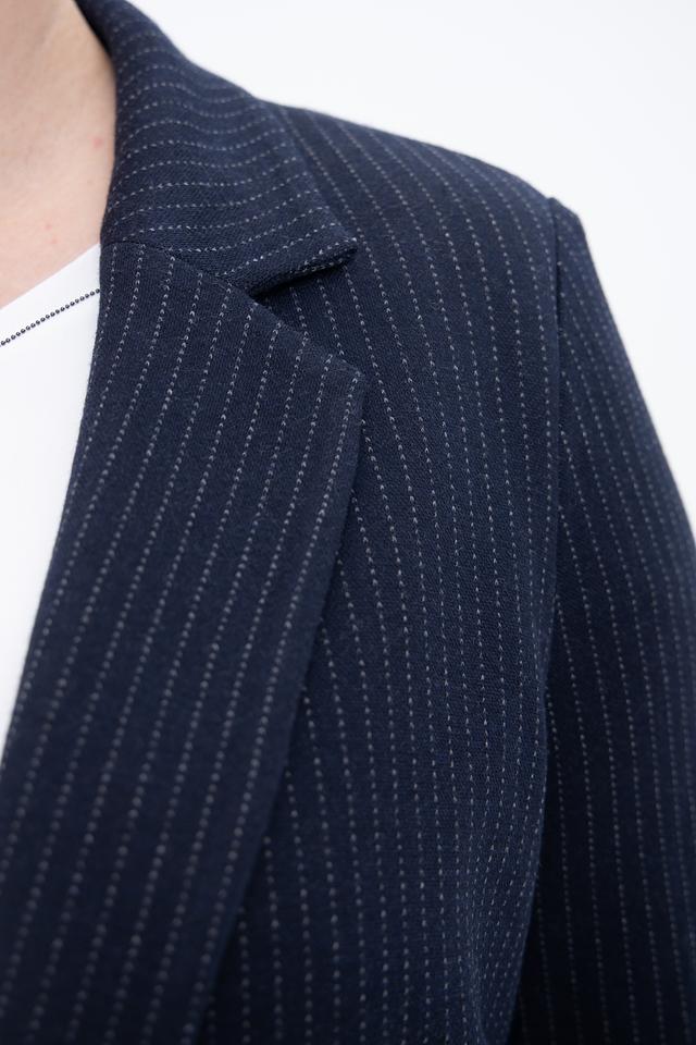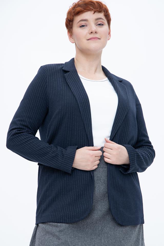 Жакет Oui синего цвета в тонкую полоску – стильное и комфортное решение для создания делового или повседневного образа. Классический крой и качественные материалы обеспечивают удобную посадку и долговечность. Состав: полиэстер 66%, вискоза 32%, эластан 2%