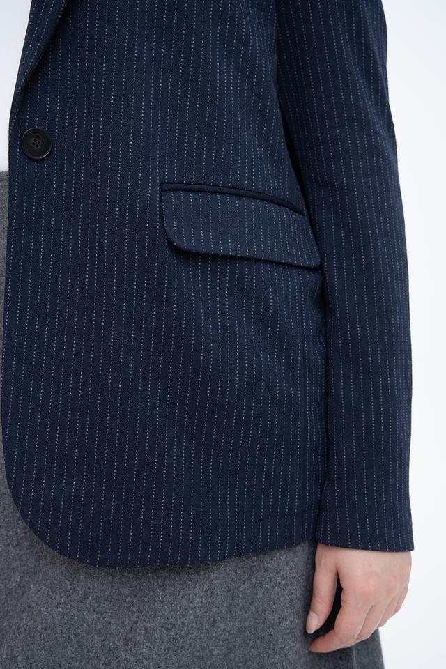 Этот жакет от Oui станет отличным дополнением к вашему гардеробу. Выполненный в синем цвете с деликатной полоской, он сочетает в себе элегантность и практичность.