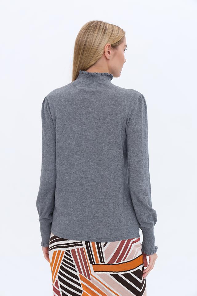 Серый пуловер от Oui с воротником-стойкой и рукавами-фонариками станет отличным дополнением к вашему гардеробу. Изготовлен из мягкого и приятного к телу сочетания хлопка, вискозы, шелка и кашемира. Состав: хлопок 57%, вискоза 30%, шелк 10%, кашемир 3%