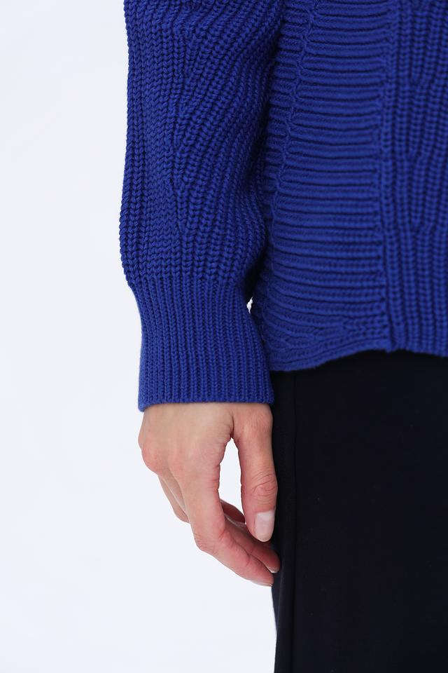 Пуловер имеет свободный крой, который не сковывает движений и позволяет создать расслабленный образ. Текстурная вязка придает изделию объем и оригинальность. Вырез горловины – классический, округлый, что делает пуловер подходящим для повседневной носки.